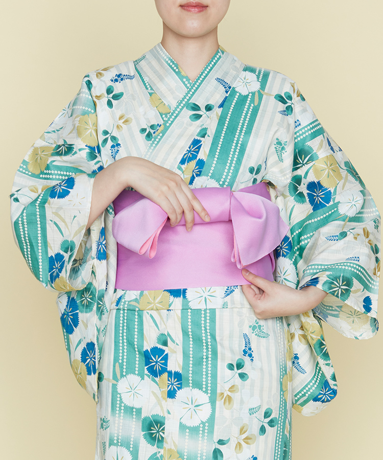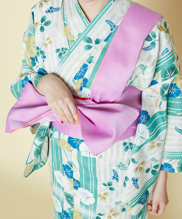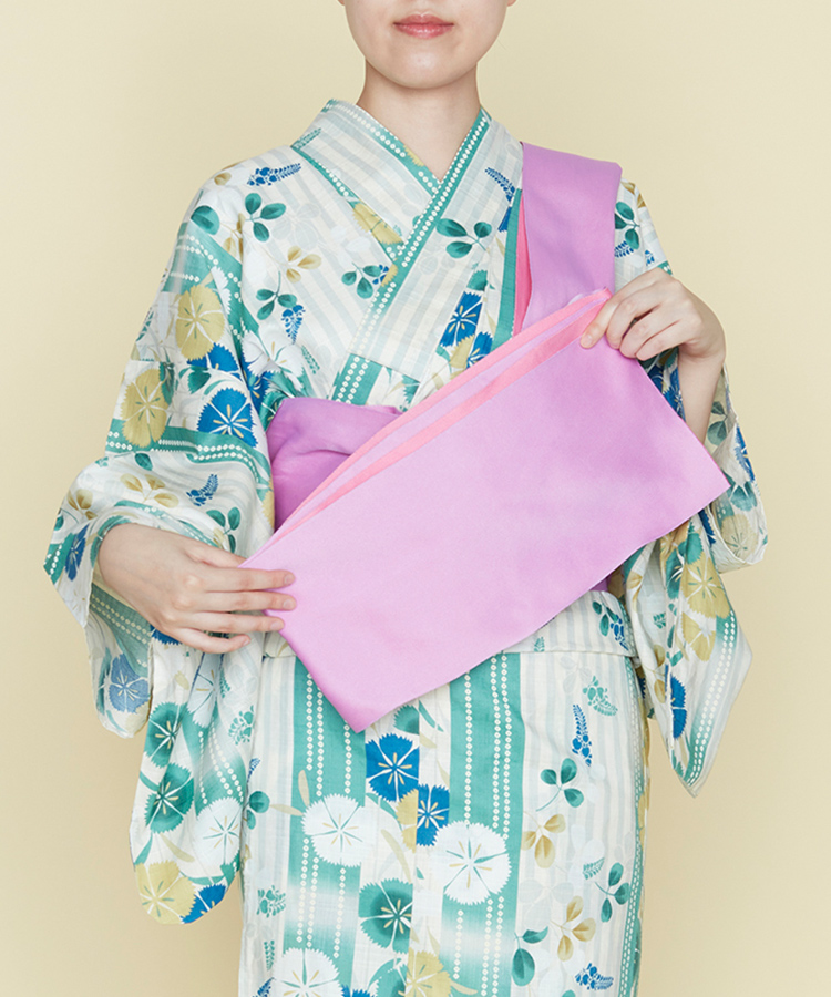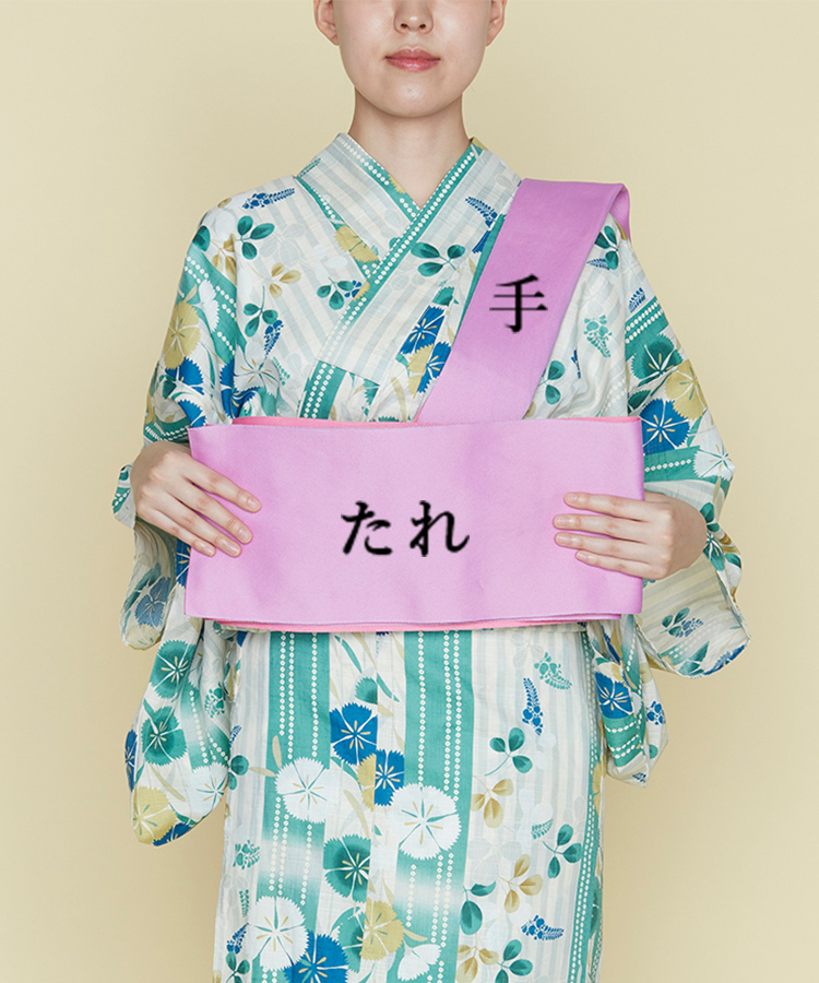 「手」:帯を結ぶ時に半分に折って使う部分のこと。最終的に結び目の中心にきます。